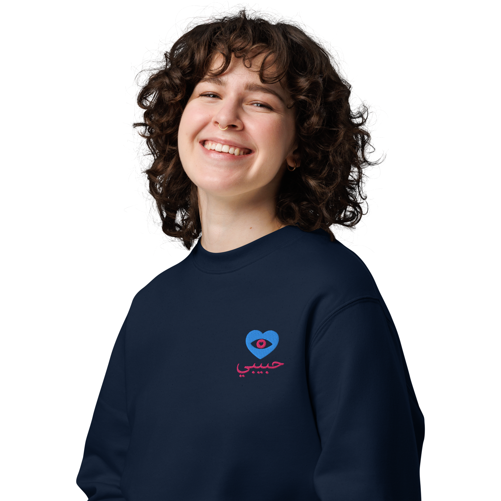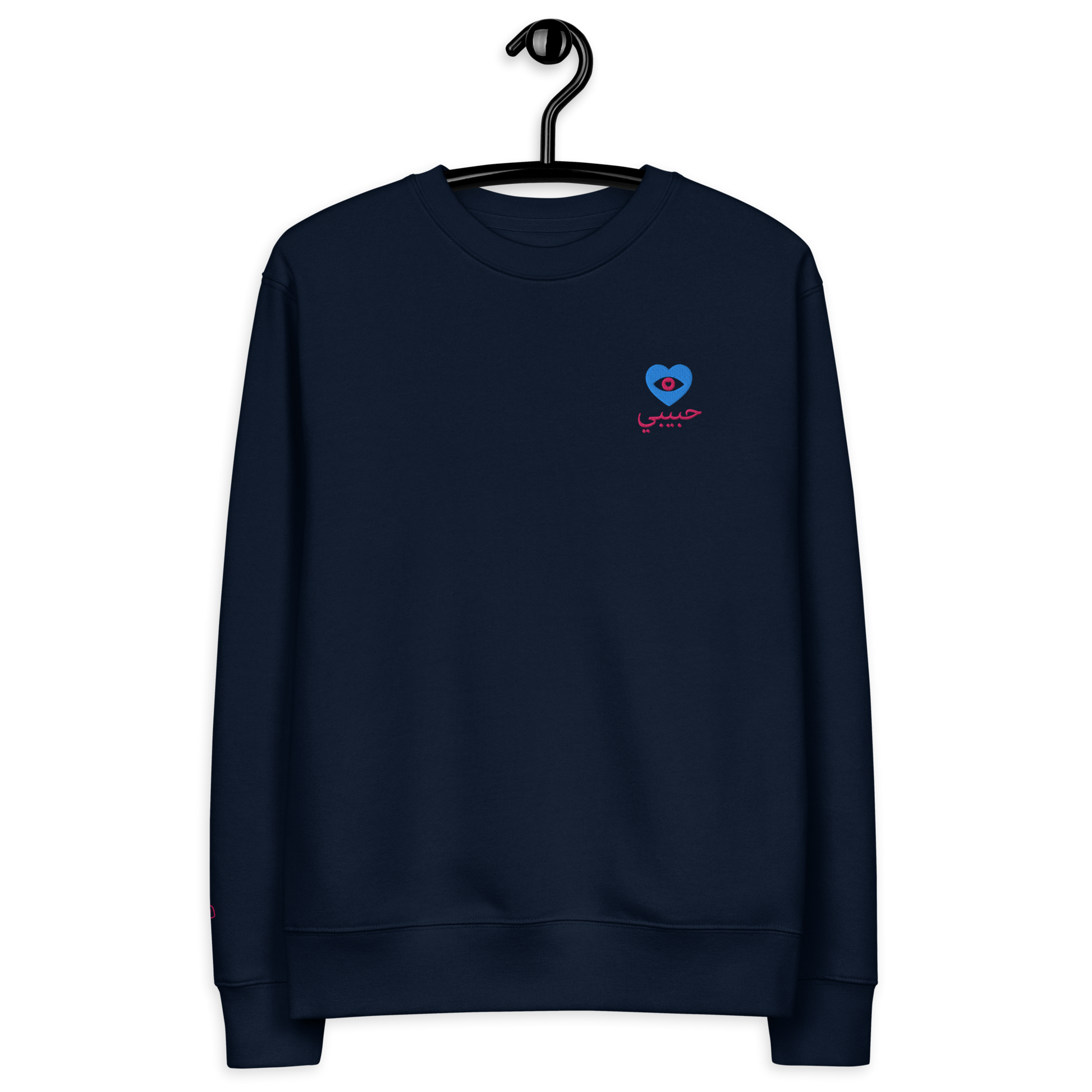 Sweat écologique unisexe - French Navy - HaBiBi en arabe/Coeur/Oeil
