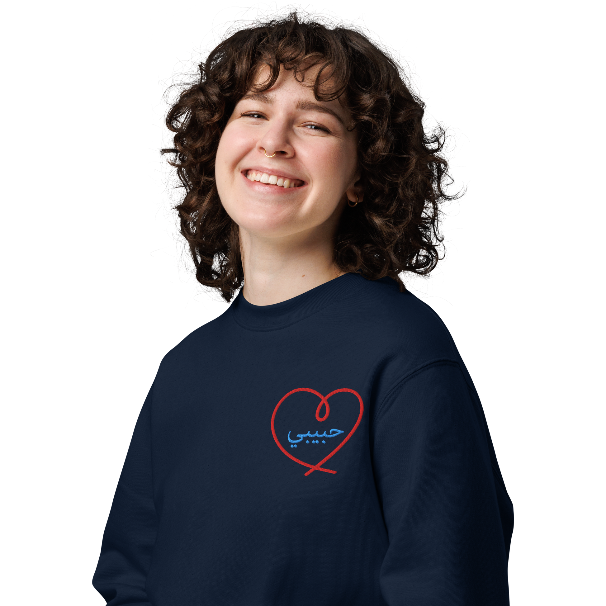 Sweat écologique unisexe - French Navy - HaBiBi en arabe au milieu du coeur